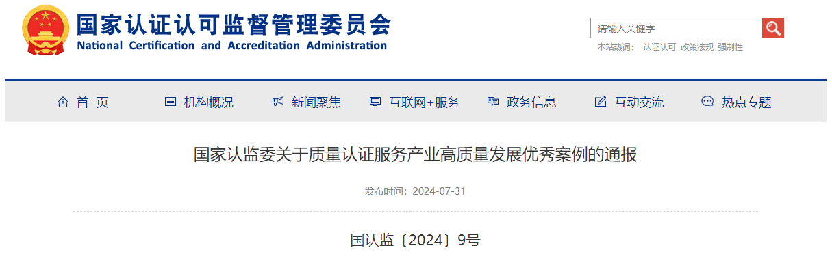 中国机器人认证(CR认证)入选国家认监委质量认证服务高质量发展优秀案例。