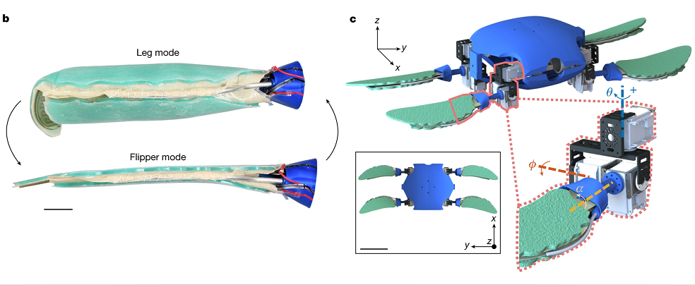 耶鲁大学两栖机器龟登Nature封面,入水瞬间四肢变脚蹼,能“按需进化”!