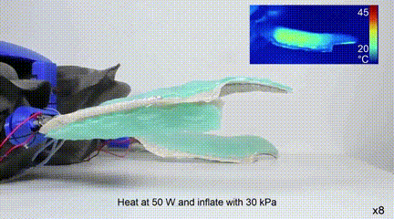 可变形的四肢是最重要的部分,由可变刚度材料和气动驱动器组成,这种可变刚度材料可以通过加热软化,并给气动推杆充气,使肢体的横截面积和硬度发生变化。