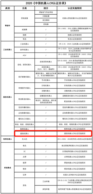 《中国机器人CR认证目录》