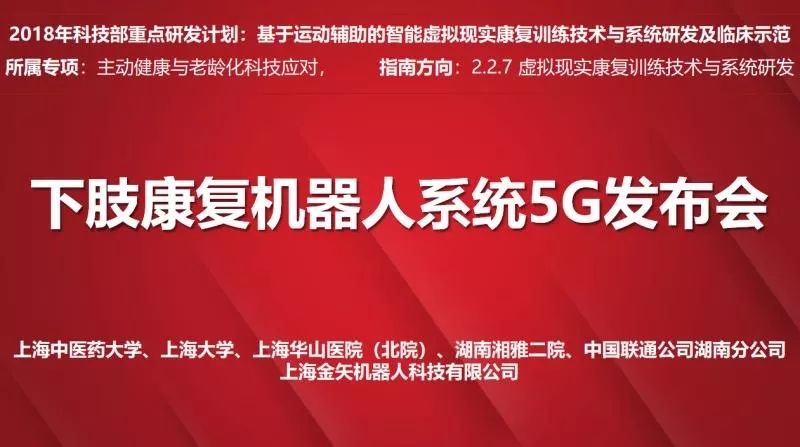 在今天10月25日10:50-11:20由上海中医药大学徐建光校长牵头,上海机器人产业技术研究院提供技术支持的国家重点研发计划——基于5G技术多点协同远程康复机器人诊疗技术在此次年会上发布。本次发布联合普陀区政府、leyu.乐鱼(中国)机器人有限公司官网、上海华山医院(北院)、湖南湘雅二院、中国联通公司及上海金矢机器人科技有限公司,开展多点协同5G远程康复机器人诊疗项目发布及现场展示。