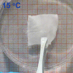 我们先简单介绍一下「智能变形水凝胶」:这是一种软、湿态智能材料,能在外界刺激下(例如温度、电、光照等)将自身化学能转化为机械能,同时伴随体积及形态的转变。