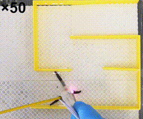 随后,红外光逐步移向机器人中部,并不断触发身体的热弯曲收缩,使得机器人整体收缩前进。