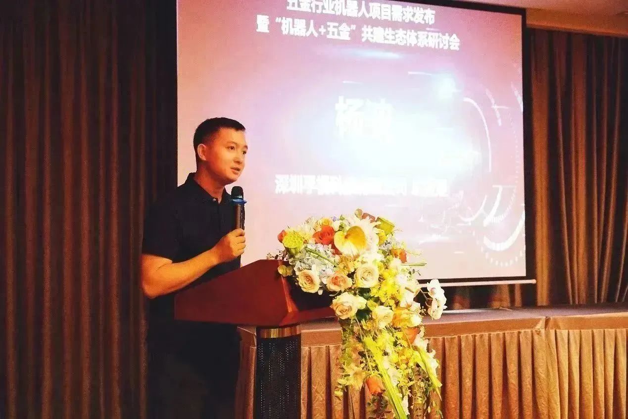在搭建电科云汇机器人应用创新服务平台过程中,有更多的机器人及相关自动化企业参与进来,发挥各自的优势,将机器人特别是工业机器人应用到五金企业的工业场景中,也推动了五金行业的高质量发展。在“机器人+五金”协同创新示范企业代表分享环节,深圳孚视科技有限公司总经理杨波(中国“机器人+五金”产业协同推进方阵专家)和东莞市集成五金有限公司项目总监叶小斌是机器人在五金行业融合应用发展过程中的推动者,与平台一起联合成功开发了多款机器人工作站,并在相关五金企业进行了小批量应用,并分享了机器人工作站在五金行业数智化转型升级中的研发经验。